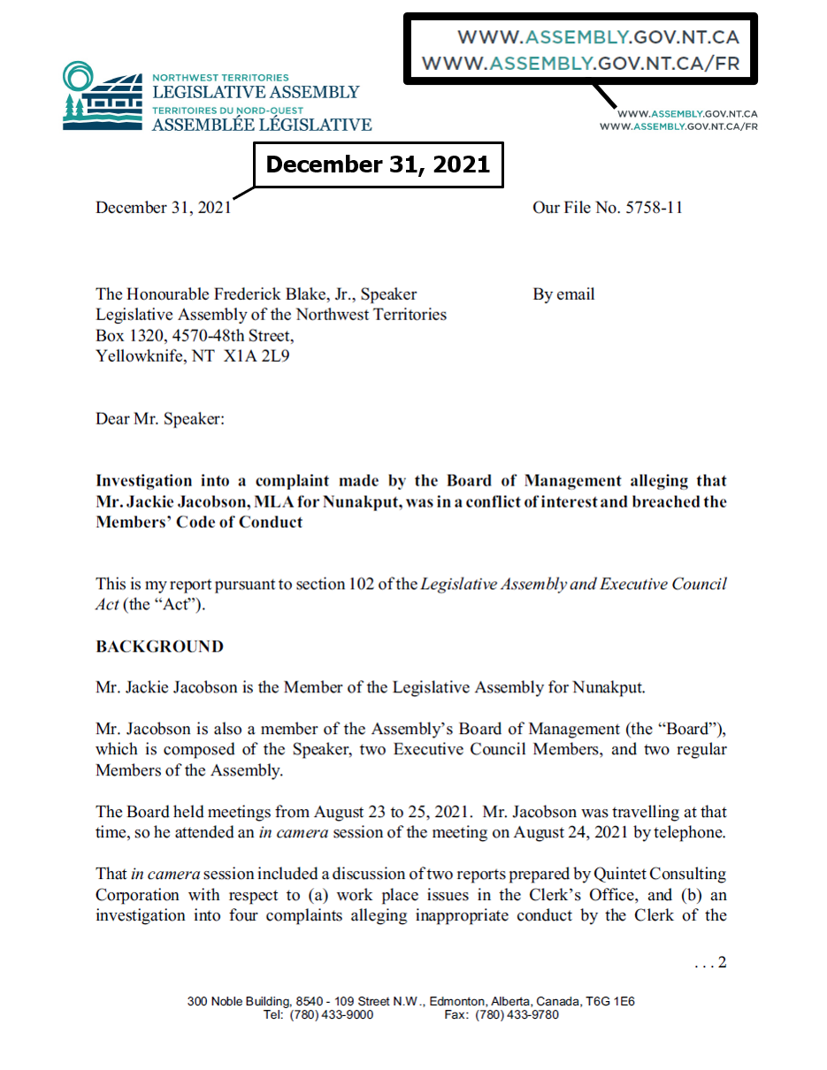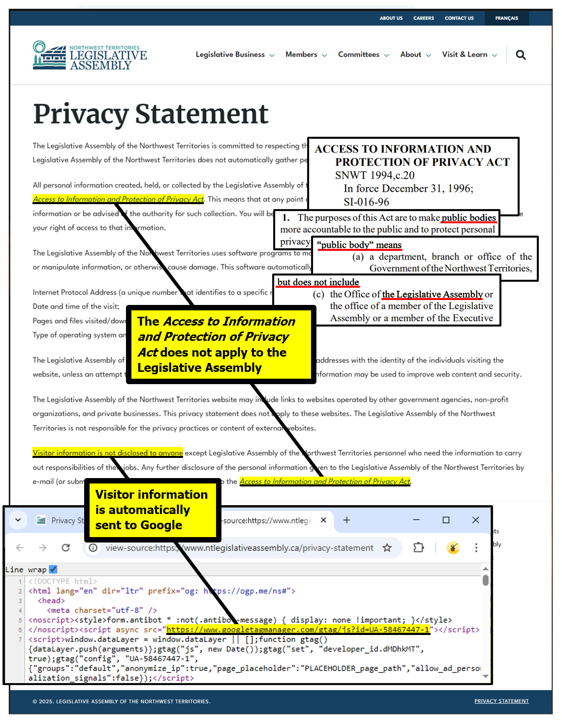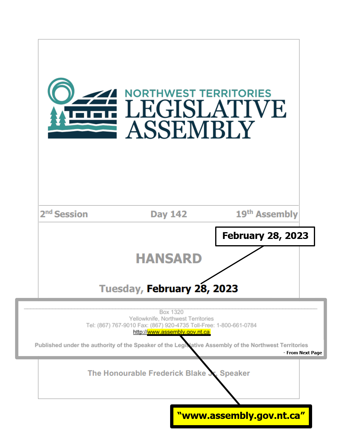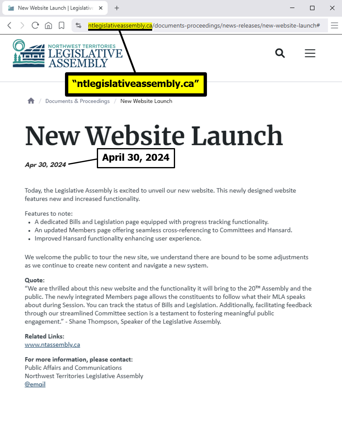 "the NTLA owns the domain name www.ntassembly.ca" is FALSE: